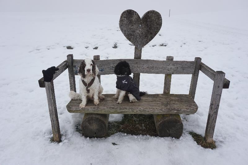 Und dann ginge es los: Von Münchwilen sind wir nach Bettwiesen, dann nach Maugwil und weiter nach Wil spaziert. Laut Planung sollten wir die Strecke in zweieinhalb Stunden geschafft haben. Allerdings haben und die verschneiten und vor allem vereisten Wege das ganze verlangsamt (zumindest für die Zweibeiner). Cookie und ich hatten keine Mühe. Herrchen und Frauchen sind beim Hügel-Aufwärts-Spazieren immer wieder einen halben Schritt zurück gerutscht…